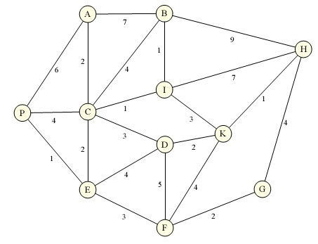 The streets of a small village are modeled as a graph, like the one shown to the right.
