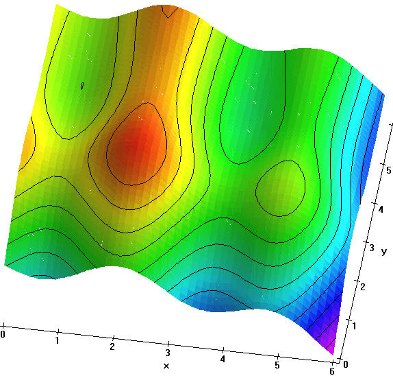 Question 3: What happens if we drop the condition about the correspondence between lava- and climb-paths on the one hand and the saddle paths on the other? So we are only looking for a surface with saddle points, relative minimum and maximum points at some given places. Can you always find such a surface? Try it for relative maximums at (2,2), (2,4), (4,2), (4,4) and a saddle point at (3,3). Solution