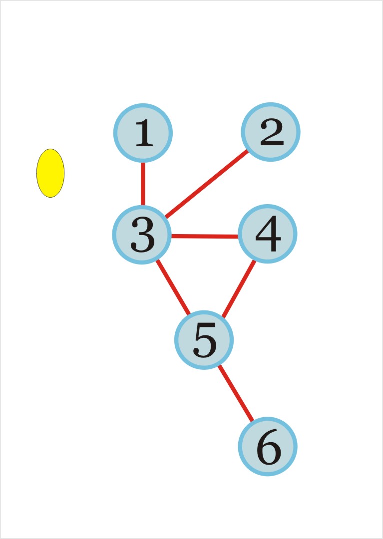 Below you find a diashow with consecutive states when crossing the river in the example below. Browse through it and try to cross the river using exactly the same sequence of states. Remember that yellow means left-bank state and green means right-bank state. The highlighted vertices are always those you leave behind. And the small empty highlighting in the first and last state denotes the empty set--- no children at the other bank.
